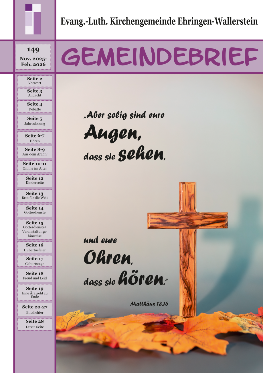 Die jeweiligen Themen sind dem jeweils aktuellen Mitteilungsblatt der Marktgemeinde Wallerstein zu entnehmen.